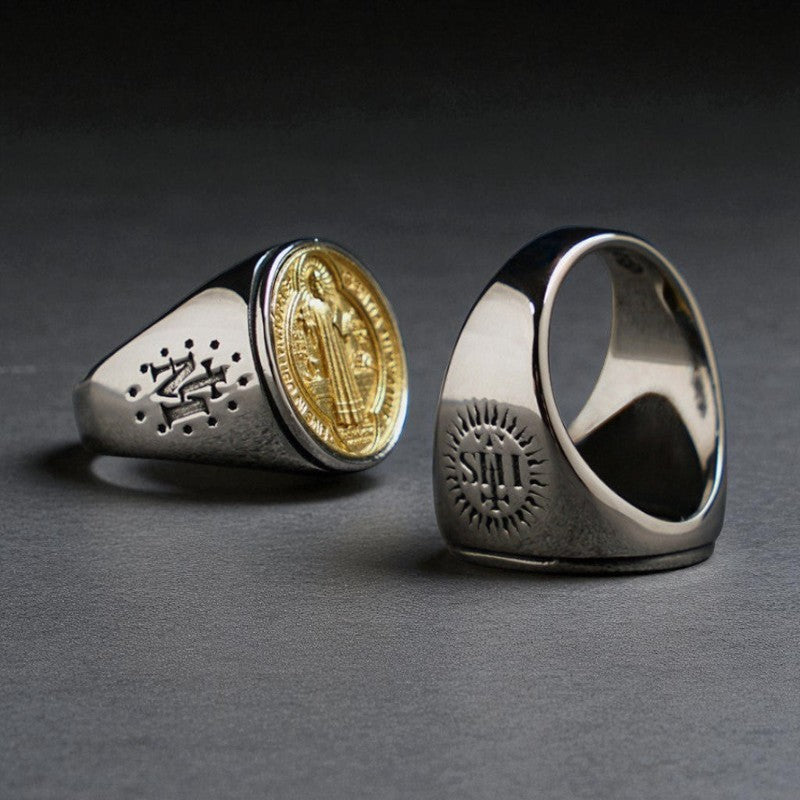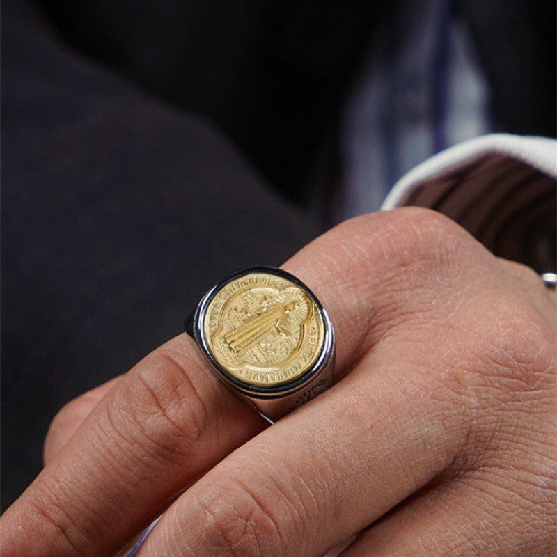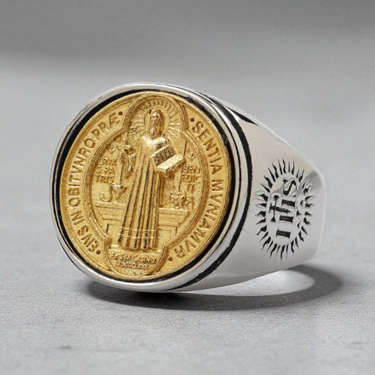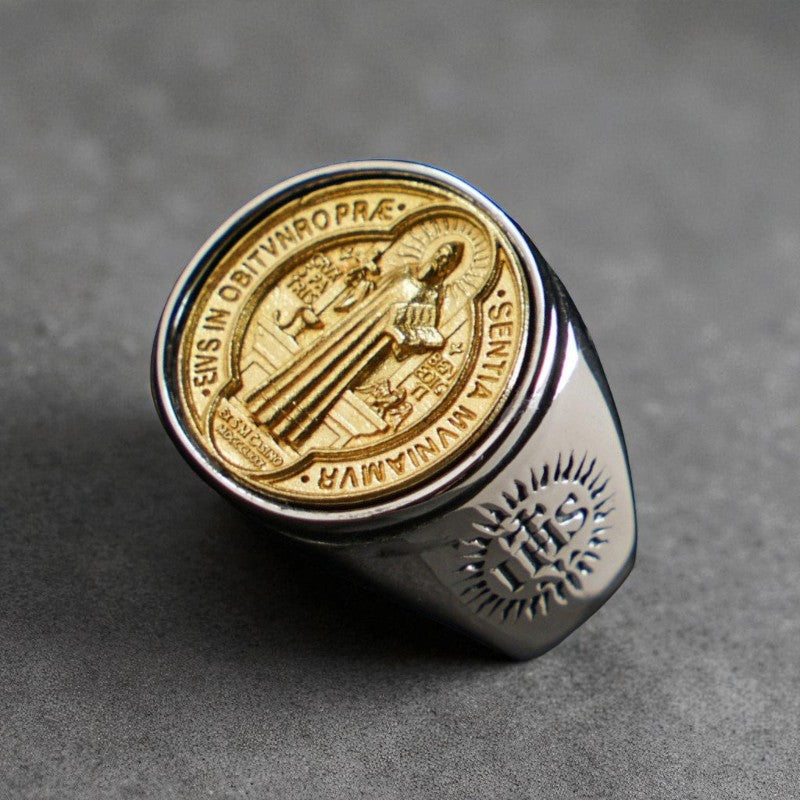 O Anel São Bento em Aço Titânio é um acessório elegante e simbólico, inspirado na proteção e espiritualidade do símbolo de São Bento. Com design robusto e sofisticado, combina resistência e estilo, tornando-se perfeito para uso diário ou ocasiões especiais. Em tons prateado e dourado, é uma peça versátil que se adapta a diferentes estilos.