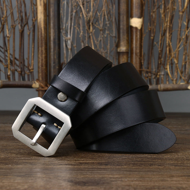 Este cinto combina a sofisticação do couro legítimo de vaca com a resistência e durabilidade do aço inoxidável, criando um acessório elegante, funcional e duradouro. A sua fivela clássica de pino em aço acrescenta um toque de sobriedade e segurança, ideal para quem valoriza qualidade e estilo intemporal.