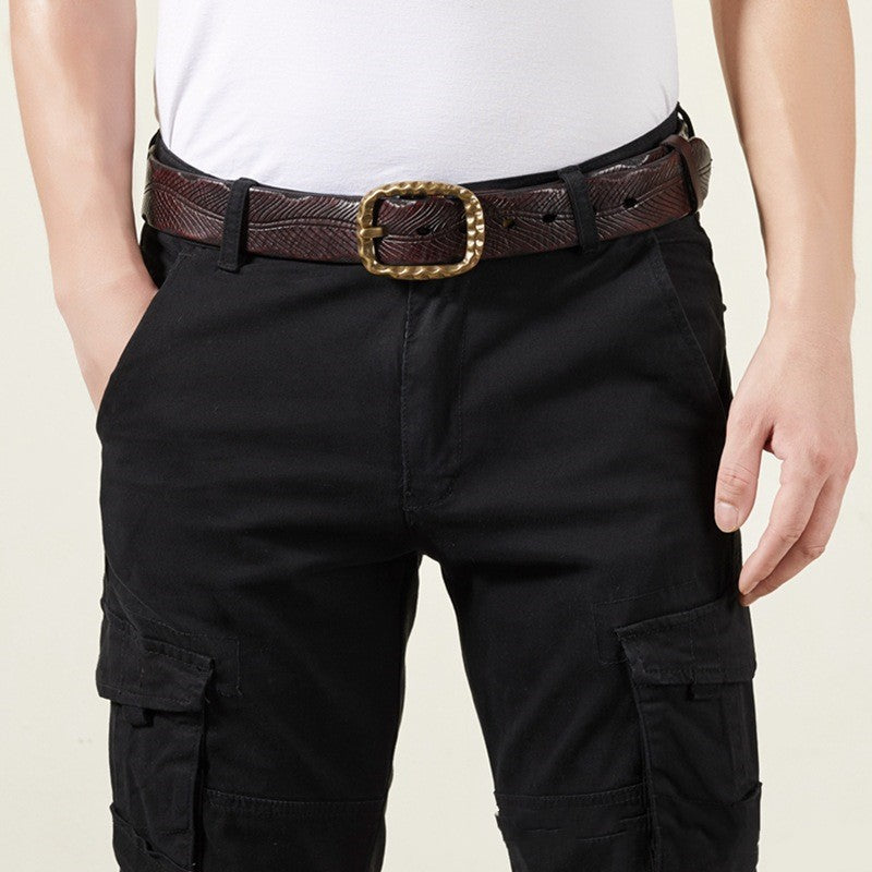 Este cinto em pele genuína de primeira camada é a escolha perfeita para o homem moderno que valoriza elegância, durabilidade e conforto. Produzido em 100% couro de vaca, oferece uma textura macia e resistente, mantendo o seu aspeto sofisticado mesmo com o uso diário.