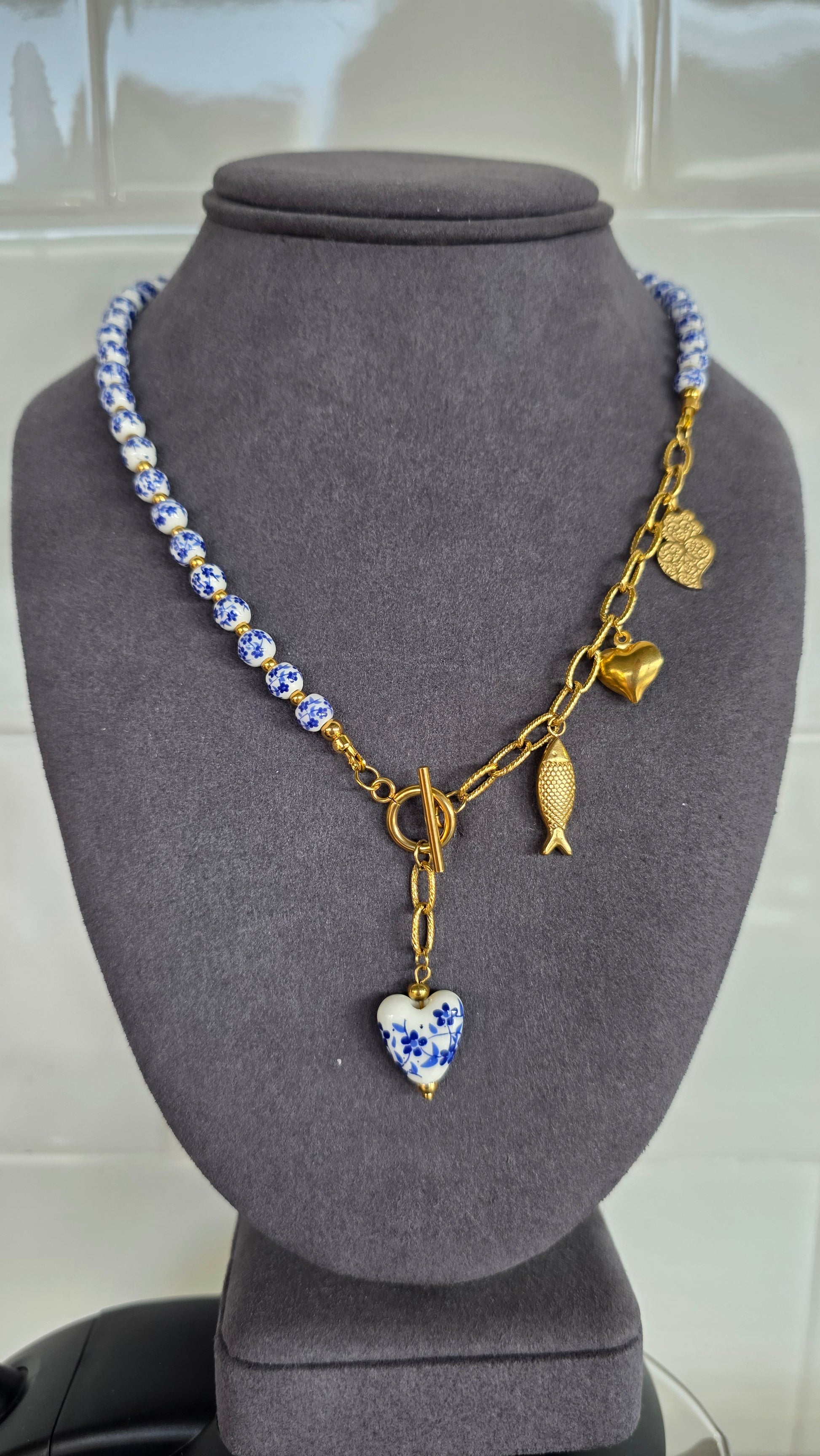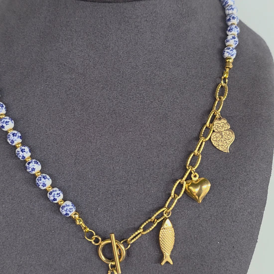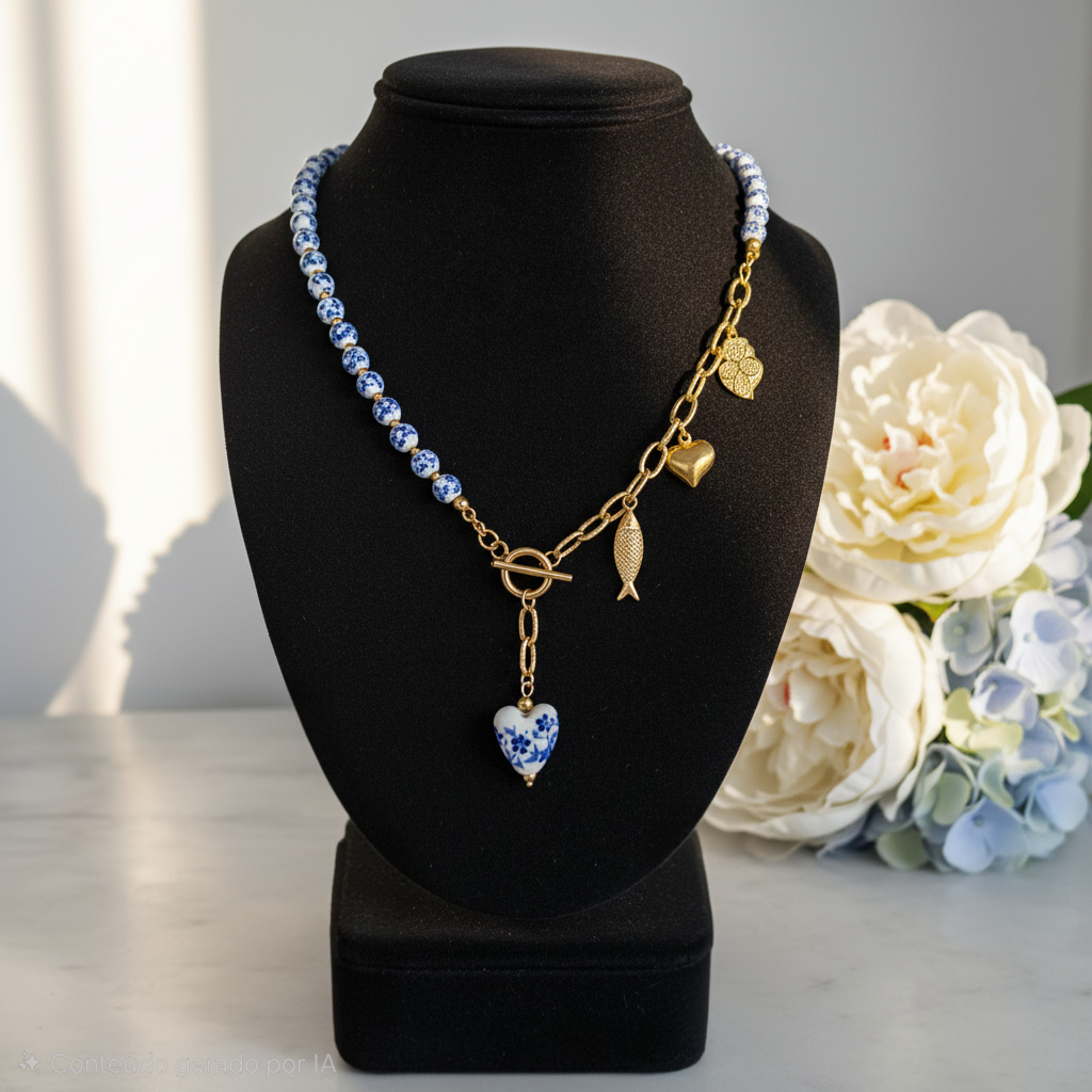 Inspirado na beleza dos azulejos que cobrem as fachadas da zona histórica do Porto, este colar é uma homenagem à tradição portuguesa com um toque contemporâneo.