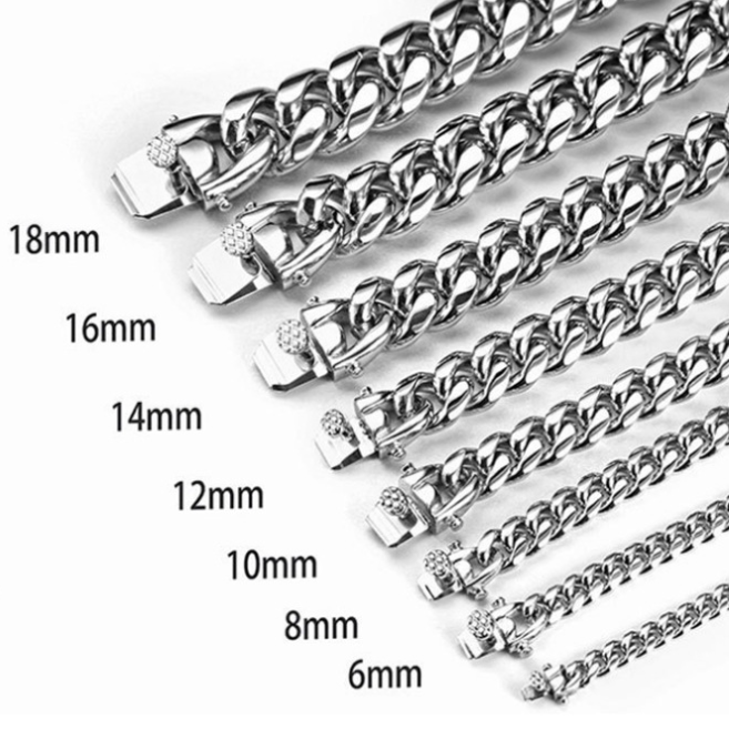 Colar e Pulseira de Corrente Cubana em Aço Inoxidável