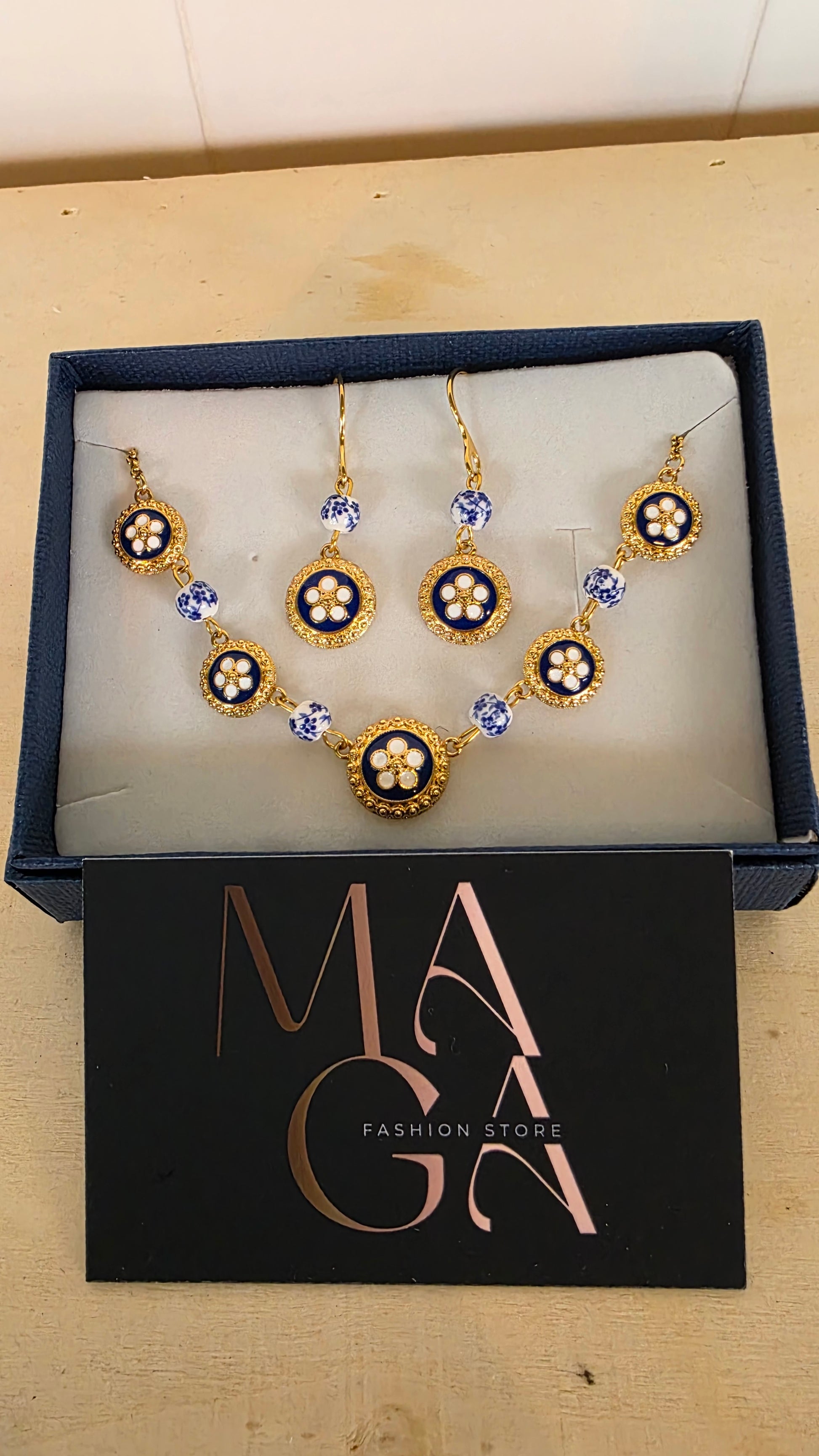 Cada peça reflete o legado das antigas oficinas de ourives, onde o tempo e a paciência transformavam o metal em verdadeira arte. O contraste entre o azul profundo, o branco delicado e o banho de ouro cria um equilíbrio perfeito entre tradição e modernidade.