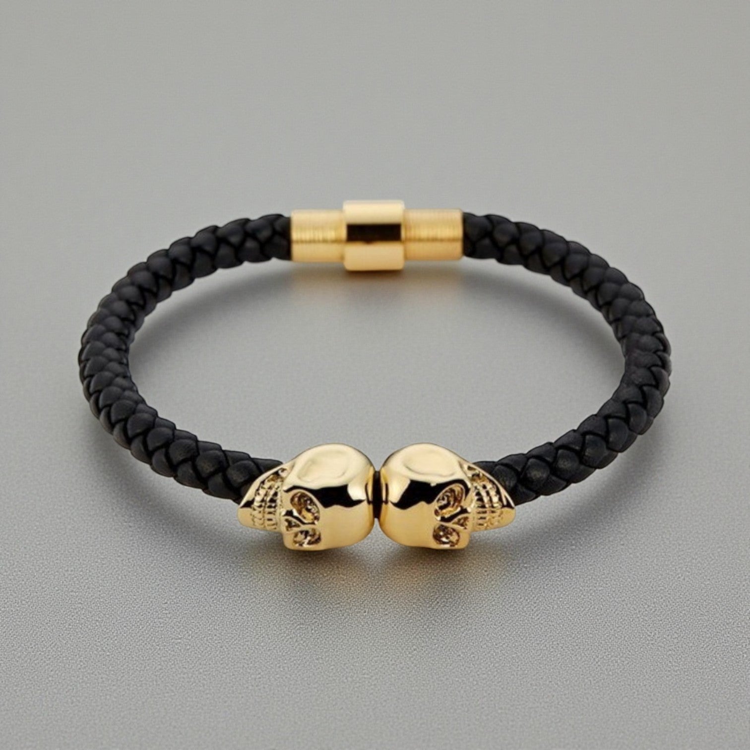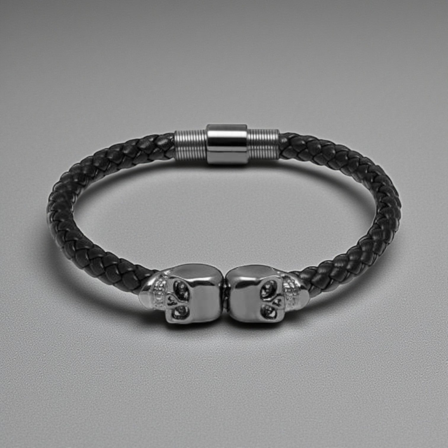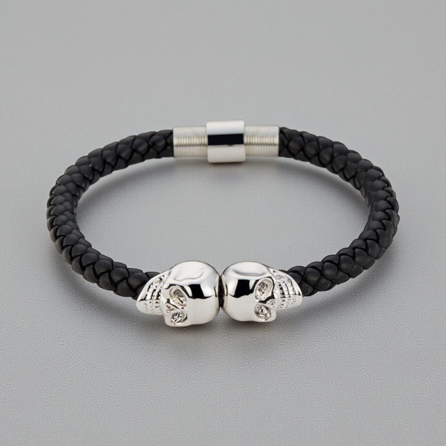 A Pulseira Skull de Couro Trançado é uma peça marcante que alia robustez e sofisticação num design ousado e contemporâneo. O couro trançado confere um visual distinto e resistente, enquanto o detalhe da caveira em aço inoxidável acrescenta um toque de irreverência e personalidade. Ideal para complementar visuais modernos e urbanos, esta pulseira oferece conforto e durabilidade, tornando-se um acessório indispensável para quem aprecia estilo com atitude.