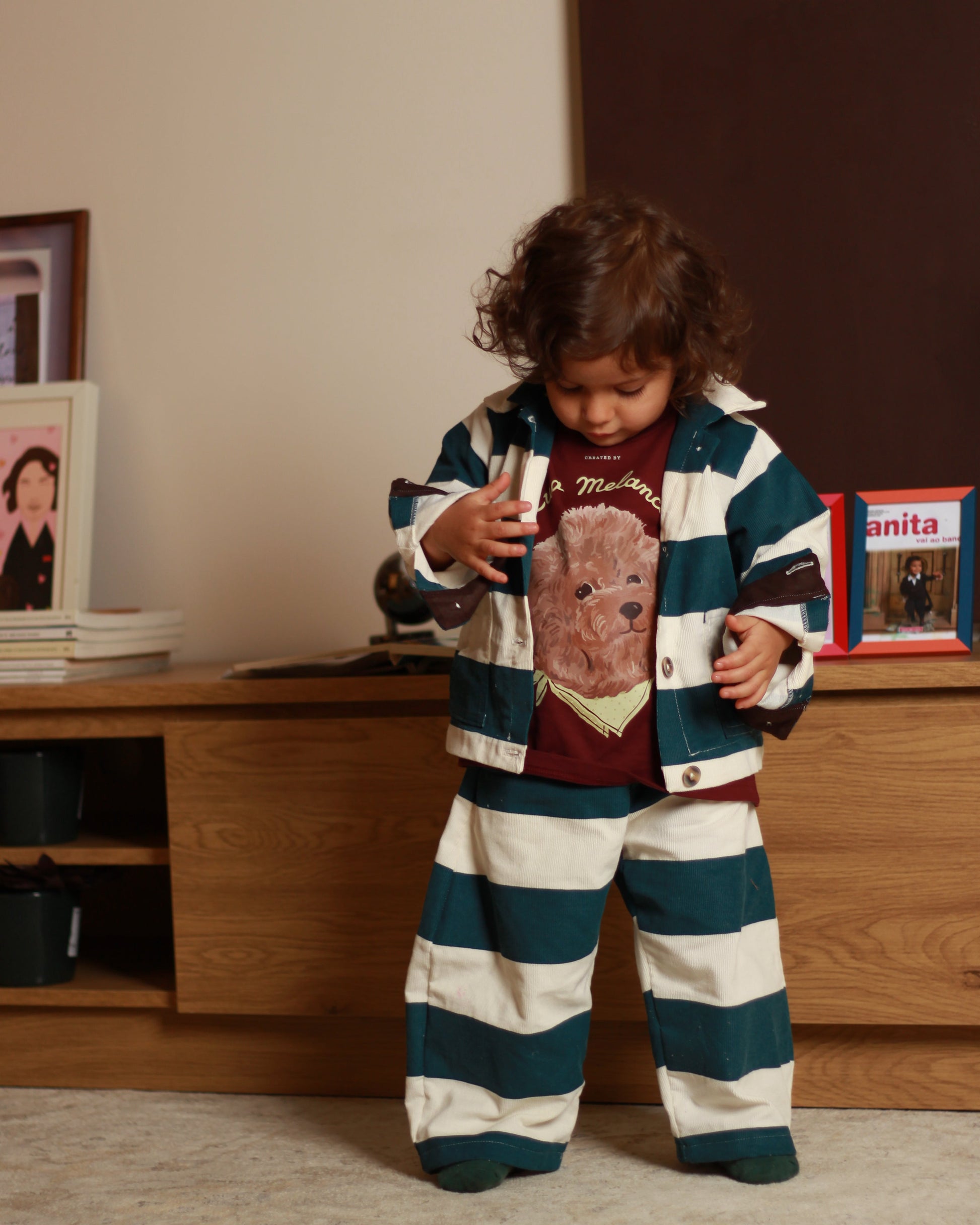 T-shirt de decote redondo e manga curta. Pormenor de estampado na frente.